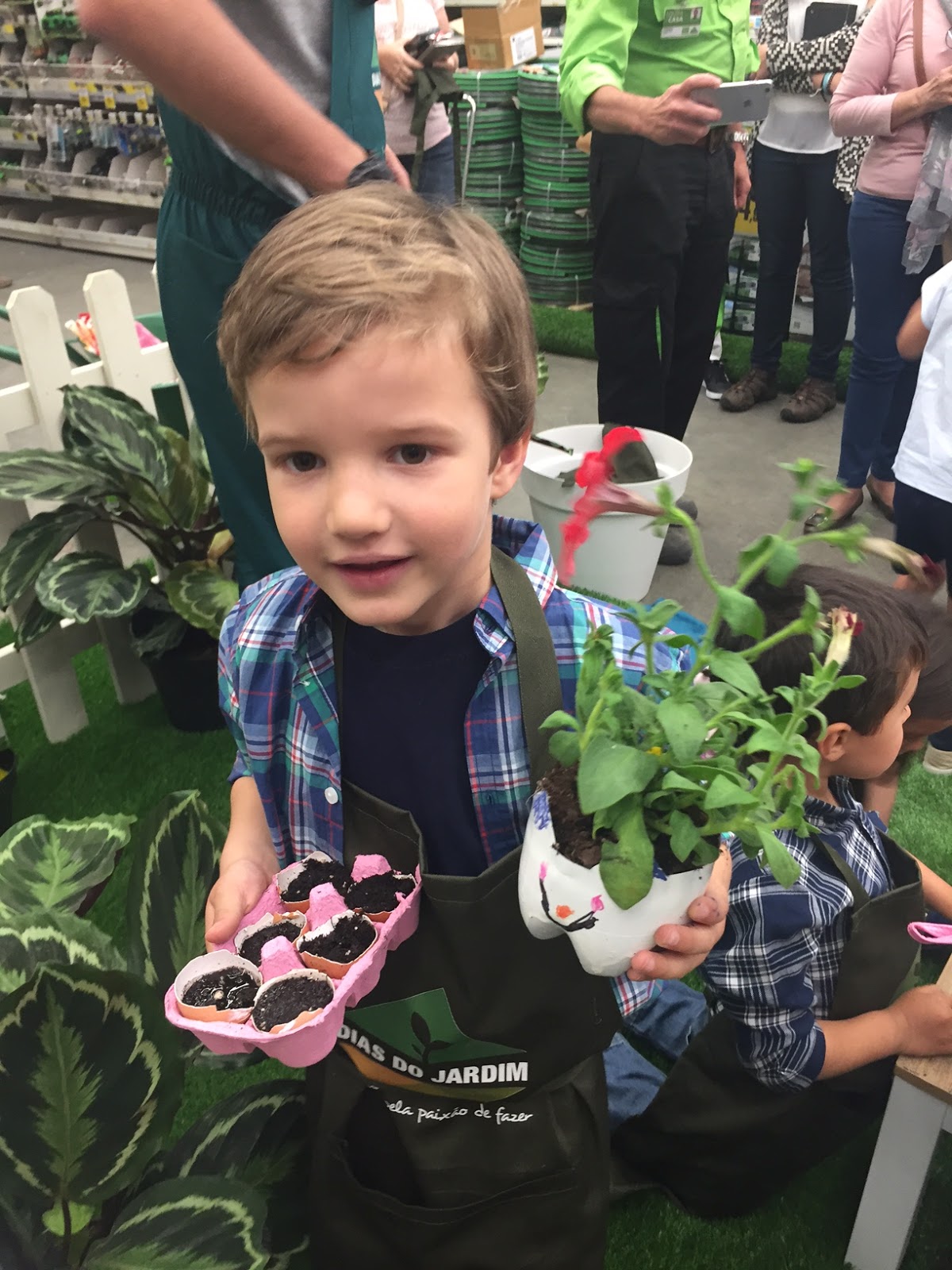 Adoraram tudo. Os workshop foram muito engraçados e os monitores fantásticos. E quando perceberam que ganharam não só os seus trabalhos para trazer para casa (que prontamente ofereceram à mãe como antecipação do Dia da Mãe ;) ), mas o avental de jardineiro, ficaram fascinados.